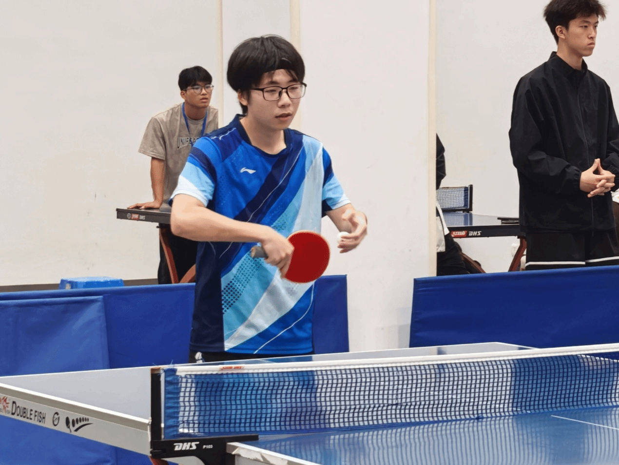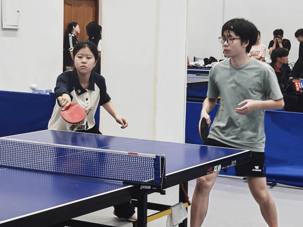 男单赛场,陈善骏、金茂凭借精准的发球和凌厉的近台快攻频频得分;女单对决中,董雅宁和齐沐辰沉着应对,灵活调整回球节奏,巧妙化解对手攻势;混双组合范文、金茂更是配合默契,在攻防转换间展现出极强的战术执行力。教练金建钰老师全程在场边悉心指导,根据赛场形势灵活调整出场阵容与战术安排;领队马羚钧细致做好后勤保障,确保队员以最佳状态投入比赛,充分展现了永利23411团队的凝聚力与向心力。