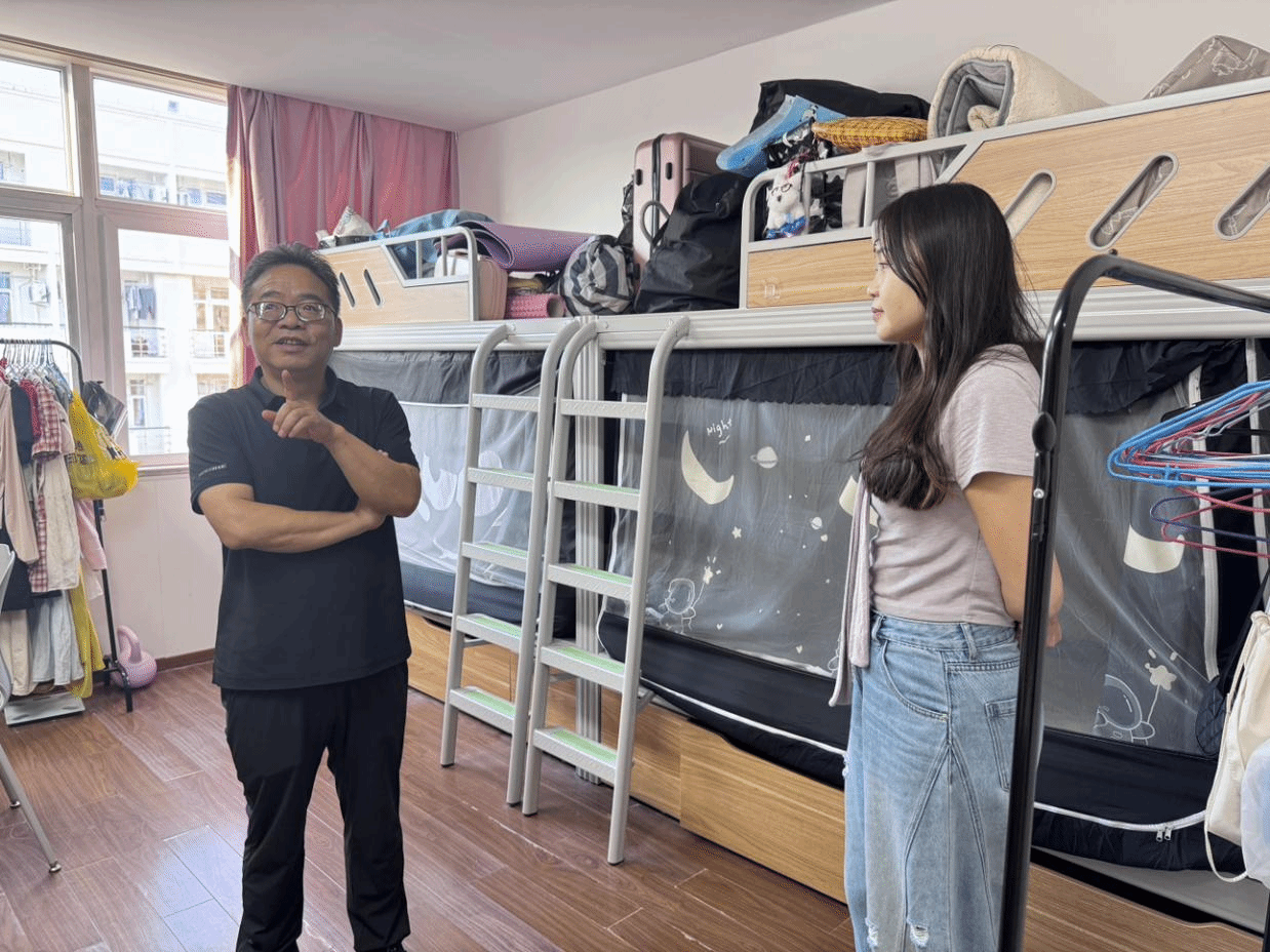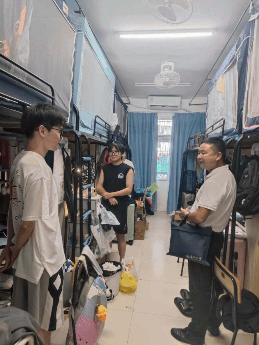 新学期伊始,校园里充满生机与活力,同学们怀揣着对新学期的期待陆续返校。为切实了解学生返校后的生活状况与思想动态,传递学院的关怀与问候,2025年9月8-9日,学院领导深入学生寝室,开展了走访慰问活动。