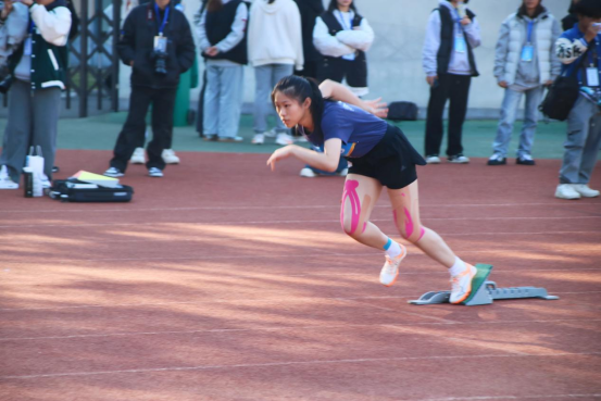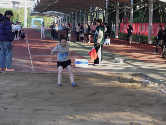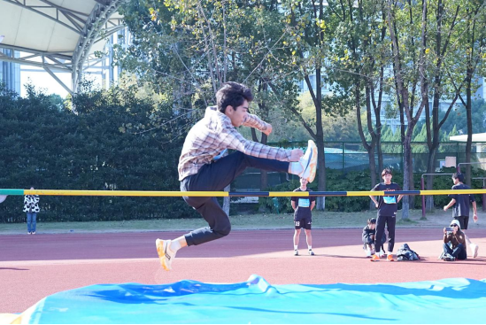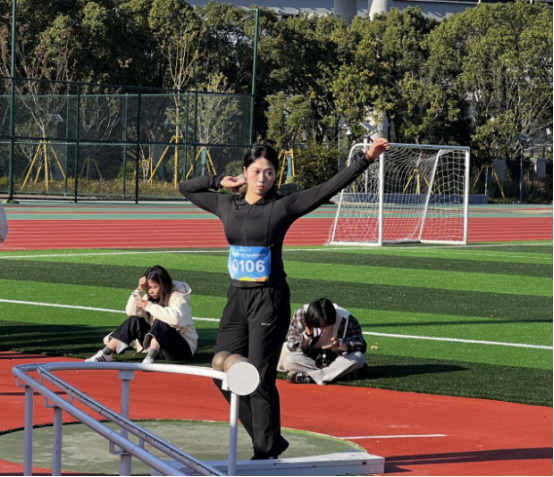 田赛舞台上,教院力量同样激荡人心。铅球选手屏气凝神,奋力掷出,铅球在空中划出稳健弧线,每一寸距离都凝聚着力量与激情;跳高选手助跑、起跳、过杆,动作连贯流畅,横杆不断升高,他们却敢闯敢拼,用腾空飞跃的姿态,诠释“挑战更高”的韧劲;标枪选手紧握长枪,凝神发力,标枪破空飞向远方,承载着他们的勇气与追求。运动员们以昂扬姿态,将师范品格刻在赛场每一寸土地,更让这份拼搏精神,成为教院学子成长路上最鲜活的动力。