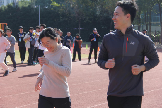 在教工项目中,老师们化身为活力运动员,而教院学子则化身最热情的“拉拉队”,为老师们呐喊助威。“100米快走”的稳健、“投壶”的专注、“真人CS”的灵活,每一个瞬间都引来学子们的阵阵欢呼,师生同心,让赛场充满温暖与力量。