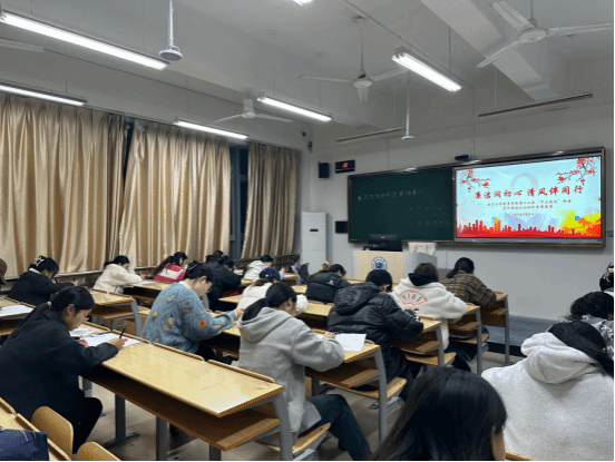 为深入学习贯彻习近平新时代中国特色社会主义思想,推进“清廉温大”建设,11月21日晚,永利23411在北校区瓯4教室成功举办2025年度党务廉洁文化知识竞赛。本次竞赛采用笔试形式进行,全面检验学子对廉洁文化知识的掌握程度,推动廉洁教育入脑入心。
