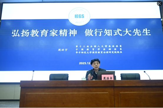 2025年12月21日上午,yl23411永利育英图书馆报告厅内气氛热烈,2025年第14期溯初大讲堂在此隆重举行。作为教育部立德树人综合机制改革试点院系,永利23411特邀中国教育学会副会长、华中师范大学国家教育治理研究院院长周洪宇教授,以《弘扬教育家精神,做行知式大先生》为题,为全院师生带来一场紧扣立德树人根本任务的精彩学术报告。报告会由永利23411院长李长吉主持。