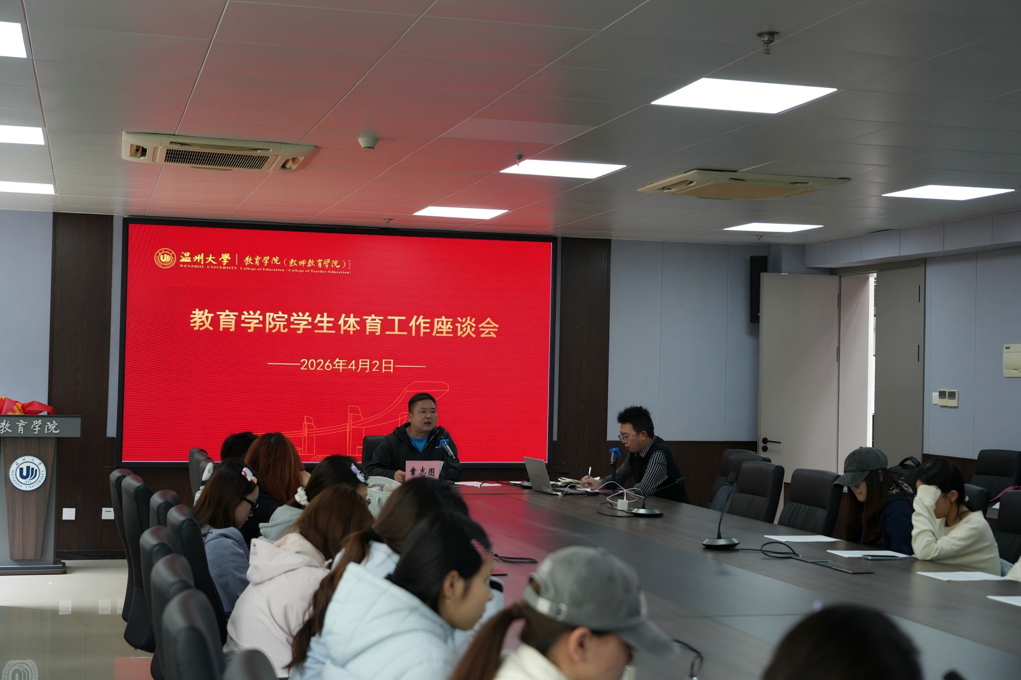 章志图书记传达“浙江全面实施大学生体质提升专项行动”精神和yl23411永利健康学校建设暨大学生体质提升专项行动推进会有关内容,听取学生代表对我院开展体育工作的意见建议。
