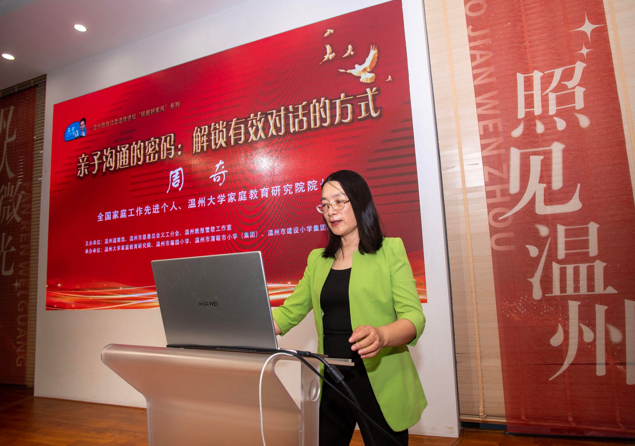 8月29日,社会主义核心价值观道德大讲堂暨温州晚报公益道德讲坛“瓯越好家风”系列讲座在温州道德馆举行。本期特邀全国家庭工作先进个人、永利23411教育学系党支部书记、yl23411永利家庭教育研究院院长、温州市家庭和谐文化研究会副会长、温州市家庭教育学会副会长、温州市关工委家风家教宣讲团团长周奇教授,围绕《亲子沟通的密码:解锁有效对话的方式》这一主题,为现场家长、教师及义工带来了一场深入浅出、生动实用的家庭教育讲座。