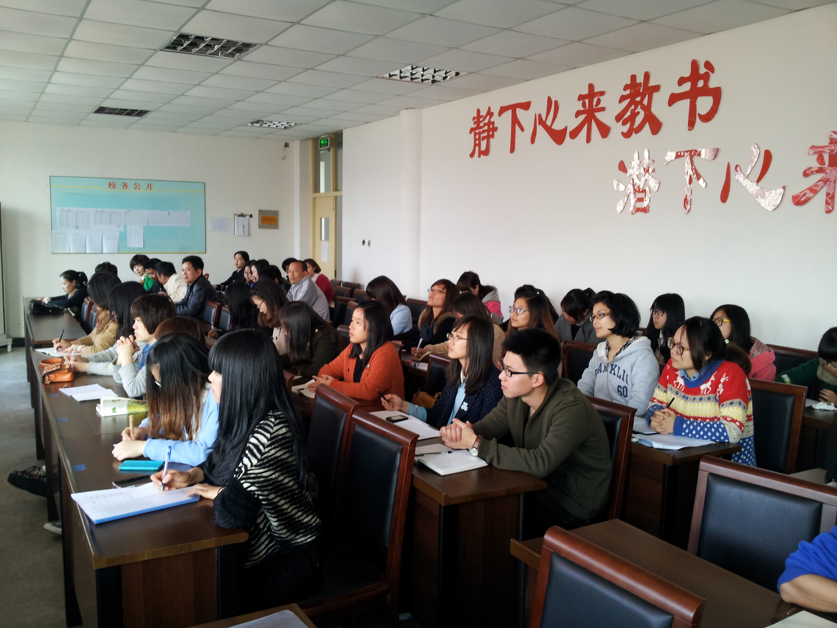 下午四点三十,我系28位实习生参与了由锦湖实验小学组织召开的见面会。出席此次会议的有:锦湖实验小学校长林国强,教导处主任姚素霞,总务处处长,学科教学组代表老师孙阿丽老师、周淑芝老师,以及三四年级各班指导老师。