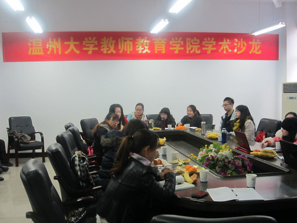首先,周蕾同学介绍了关于她的毕业论文——《小学绿色教育核心理念及可行性研究》的开题的一些想法。她以洞头县城关二小为例,介绍了环境教育相关的人口和可持续发展项目,为大家呈现了毕业论文的开题流程。沙龙的高潮由王娟同学的演讲所发起。王娟同学根据两年来的科研经验,与大家分享了了以下几点收获:1.关注聚焦成体系;2.认清现实找依靠;3.脚踏实地定题目;4.技术才是硬道理;5.合作分享做研究。她结合自身经历相进行分析讲解,引起了大家强烈的共鸣。沙龙以吴琼琼同学关于《男孩危机》的论文观点的解说结束。吴琼琼同学从生物学逻辑、心理学逻辑和教育学逻辑证明了男孩危机的存在。语言幽默风趣,论点新颖,论据充足,引发了同学们的热烈讨论。