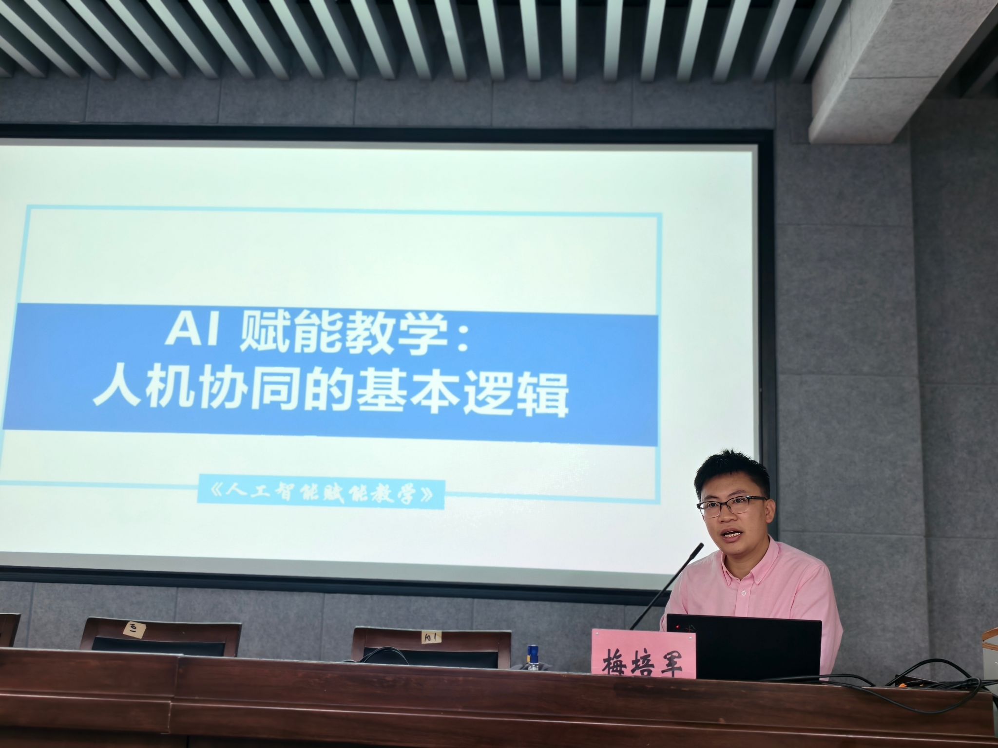 11月1日上午,温大梅培军教授以《AI赋能教学:人机协同的基本逻辑》为题,从AI导学、助学、助训、拓学等多个维度,系统阐述了人工智能在教育领域的应用场景与核心优势。随后,其团队的蔡荣老师聚焦小学语文创意写作,展示了AI在实操中的具体应用。