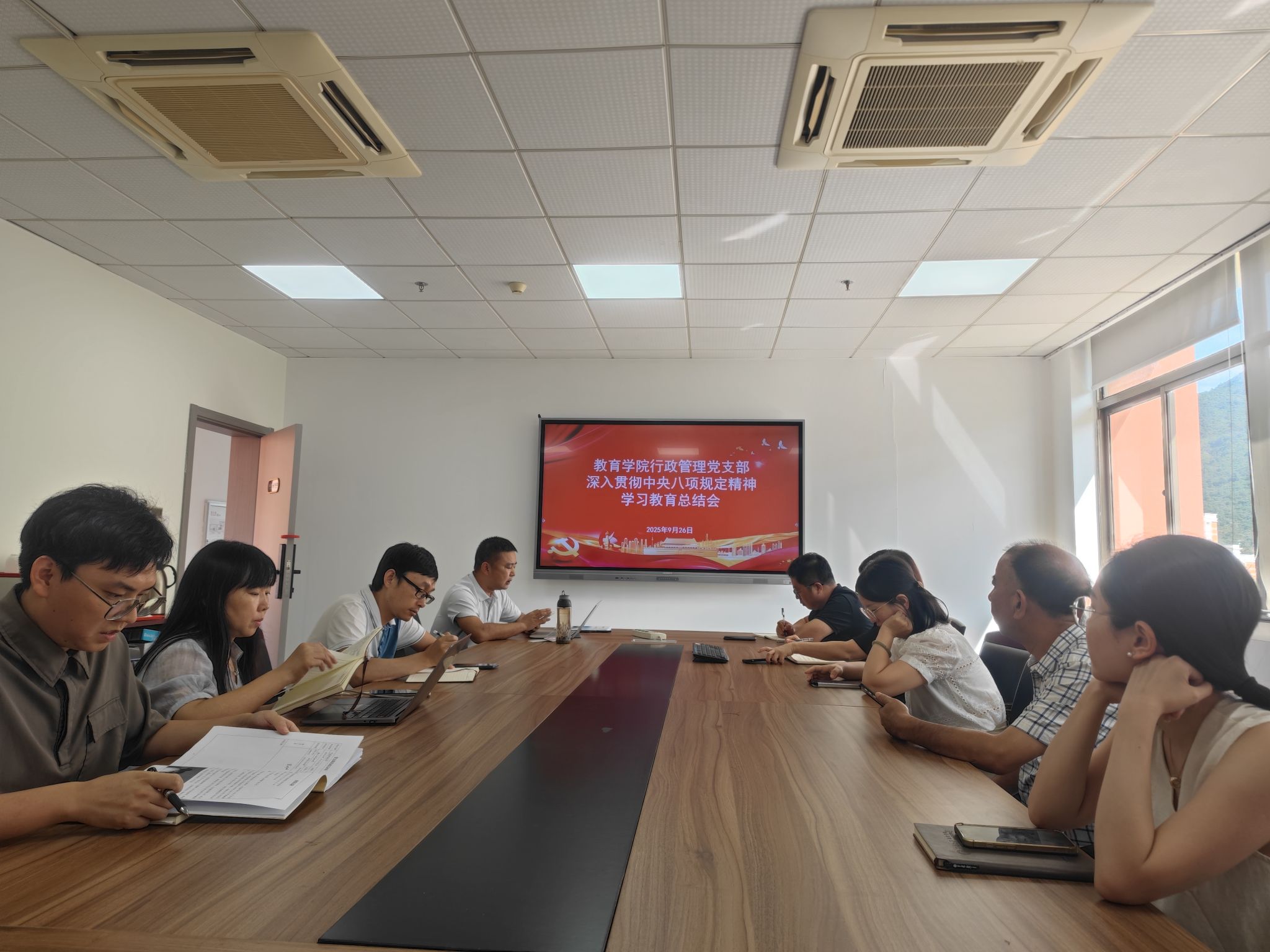 党支部书记章志图总结本支部深入贯彻中央八项规定精神学习教育开展情况,领学习近平总书记关于“锲而不舍落实中央八项规定精神 推进作风建设常态化长效化”的重要指示精神,以及中央、省、市、学校党建领导小组会议精神,学校学习教育总结会议精神。